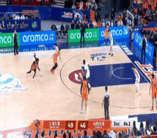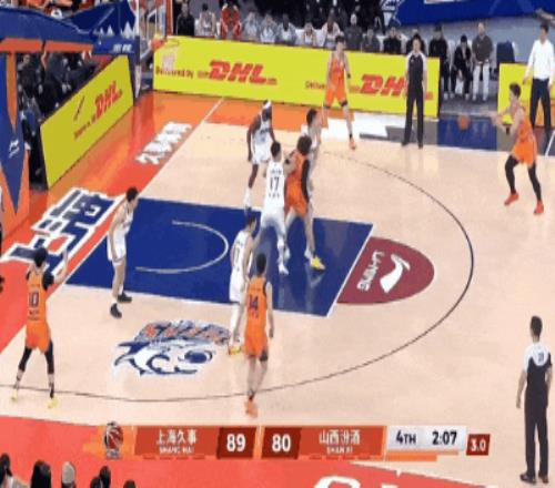 暂停过后,山西队做出调整,迪亚洛替补状态不佳的奈特上场。上海男篮也做出应对,闫鹏飞、怀特塞德上场给足对手内线压力。古德温与怀特塞德一里一外很快帮助上海男篮把分差拉开到了两位数。