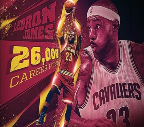 2015—16赛季,在骑士对阵活塞的比赛中,詹姆斯成功解锁26000分,这使得他成为历史上最年轻的26000分先生。