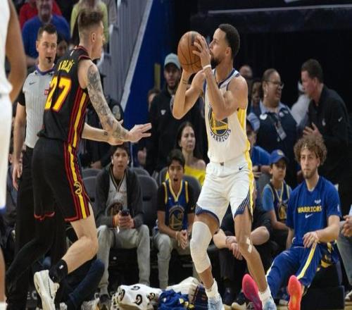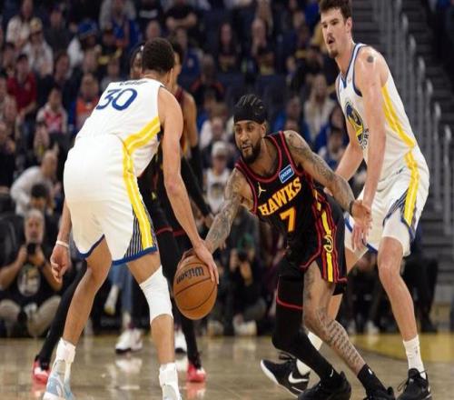 本场比赛,双方在首发阵容上面,勇士这边派出的是,库里,追梦格林,巴特勒,波斯特和穆迪,老鹰这边派出的是,约翰逊,奥孔古,沃克,丹尼尔斯和克雷伊奇。首节比赛开始,勇士率先拿到球权,库里的后撤步两分球稳稳命中,打进本场比赛首个进球,约翰逊撤步三分一箭穿心,也为老鹰开张,巴特勒慢三步节奏上篮轻松命中,波斯特的弧顶大号三分球张手就有,约翰逊突击篮下,双手震荡灌篮技惊四座,库里和沃克对飙三分球都有,奥孔古油漆区灵动抛投稳稳命中,约翰逊手感火热,内外两开花连得5分,库里的中距离干拔空心命中。
